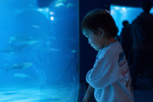 海遊館に話を戻すと、真剣な表情で水槽を見るシーンを撮影できました。